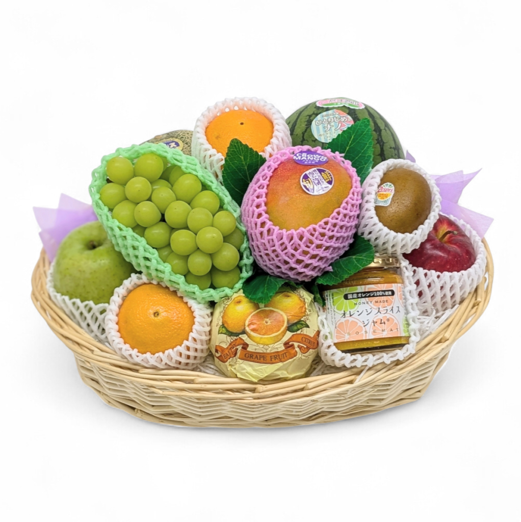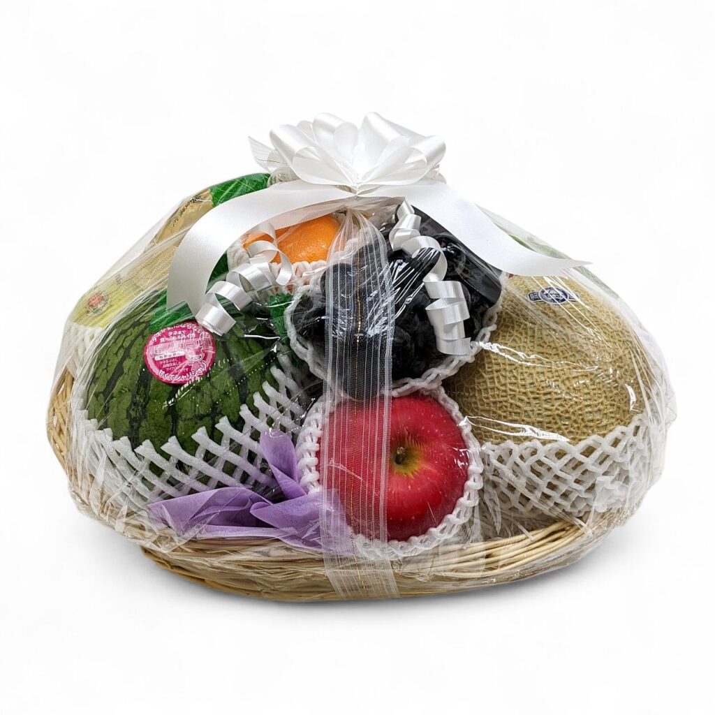 高級フルーツ(メロン・マンゴー・小玉スイカ・ぶどう他)をふんだんに使用し、ボリューム感たっぷりに仕上げた平篭詰め合わせ。大きめサイズで存在感・高級感を最大限に醸し出す商品です。